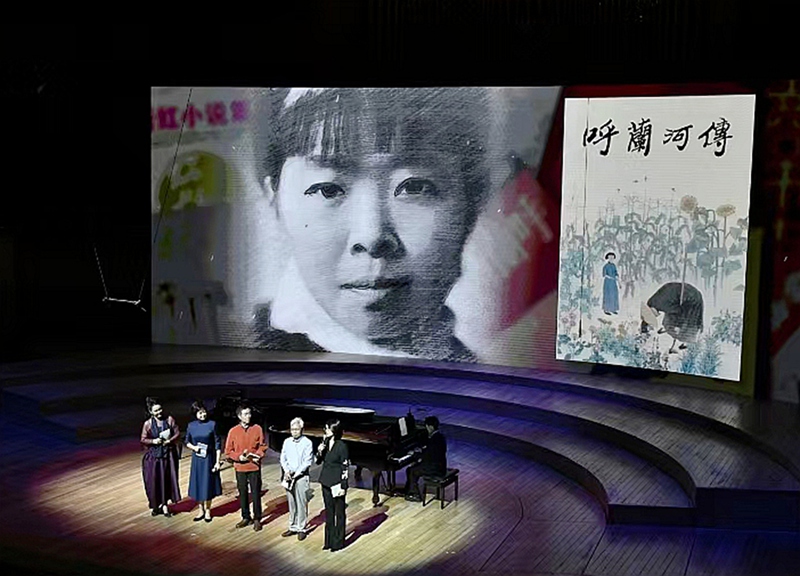 “蕭紅已成為黑土地的精神路標(biāo)!蕭紅作品中對人民的悲憫、對命運(yùn)的抗?fàn)?、對家國的摯愛,恰是東北文化與中華民族精神的堅(jiān)韌內(nèi)核!”由著名主持人敬一丹擔(dān)任誦講人,開幕式演出以“情景音樂會”為創(chuàng)新形式,分《序曲》《松花江上》《抗戰(zhàn)的烽火》《文脈永續(xù)》四大篇章展開。音樂會在《呼蘭河邊的小姑娘》合唱中拉開帷幕,童聲與交響樂交織再現(xiàn)蕭紅筆下菜園里的純真目光;情景朗誦《呼蘭河傳》以抒情語調(diào)勾勒東北風(fēng)情長卷,喚醒觀眾對蕭紅故鄉(xiāng)的想象。