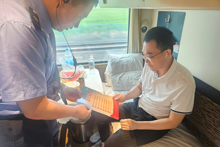 為了讓旅客也參與到安全行動(dòng)中來(lái),乘務(wù)員們化身安全宣傳員,穿梭在各個(gè)車廂為旅客發(fā)放安全知識(shí)宣傳單,不斷強(qiáng)化旅客的安全意識(shí)。