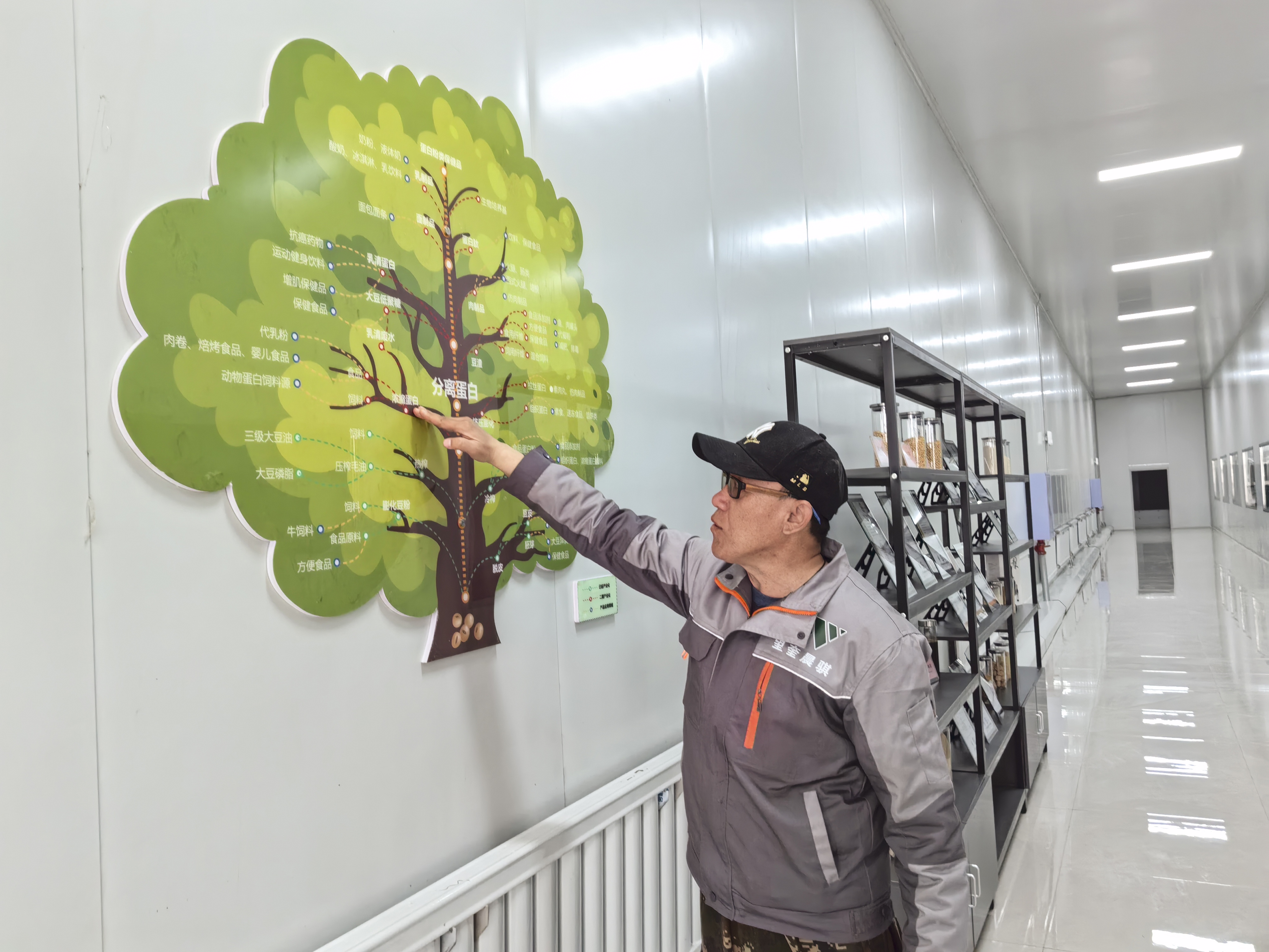 在成品車間,記者看到一張“樹狀圖”,清晰展示著大豆深加工的產(chǎn)業(yè)圖譜,藍色圓圈代表產(chǎn)品應(yīng)用領(lǐng)域,綠色圓圈代表已經(jīng)實現(xiàn)產(chǎn)業(yè)化的領(lǐng)域,紅色圓圈則代表二期即將上馬的加工項目。從“樹狀圖”上,可見晨騏農(nóng)業(yè)強勁發(fā)展的勢頭。