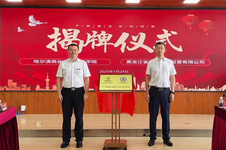 活動中,王彬、趙大偉共同為“產(chǎn)教融合聯(lián)合培養(yǎng)單位”揭牌。龍睿公司黨委委員、總會計師劉躍剛,哈爾濱商業(yè)大學(xué)會計學(xué)院院長梁運吉代表雙方簽署了《戰(zhàn)略合作協(xié)議》及《財務(wù)人員兩年培養(yǎng)工程計劃合作協(xié)議》。