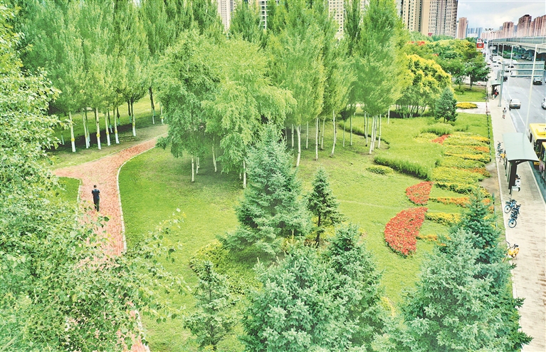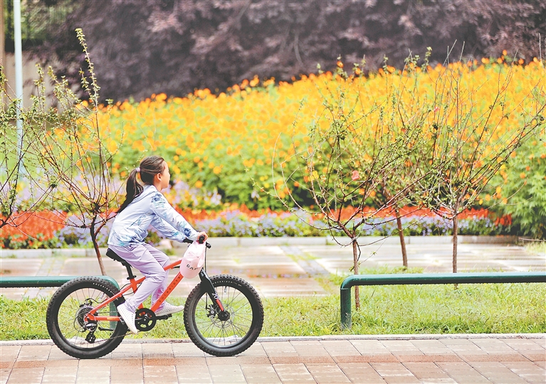 3日,哈爾濱市道里區(qū)陽明灘大道附近,行人從“口袋公園”旁走過。今年,當(dāng)?shù)匦陆硕鄠€(gè)“口袋公園”,占地面積數(shù)萬平方米。公園里,樹木生長茂盛,鮮花爭奇斗艷,小道從園中穿過,道旁設(shè)有座椅、健身器材等。許多附近居民到這里休閑、賞景。