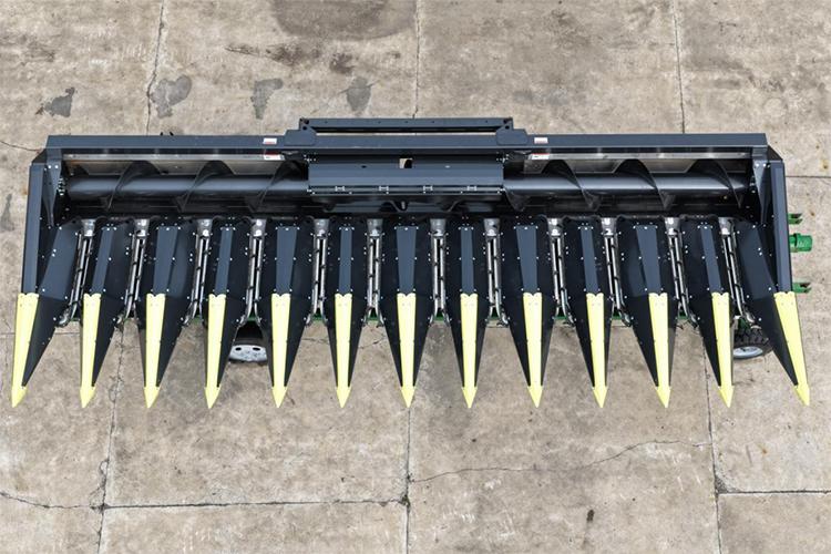 現(xiàn)場會上,最讓人駐足的是現(xiàn)場展示的意大利卓收割臺, 此次引入的卓收割臺,其自動摘穗板每行單元可實(shí)現(xiàn)自動開合且?guī)в袦p震功能,能根據(jù)玉米粗細(xì)靈活調(diào)節(jié)間隙,有效解決了其他品牌割臺無法對每行每株精準(zhǔn)適配的問題;同時,收割臺的拉莖輥長度較其他品牌割臺增加 8 公分,讓割臺更貼合地面,在收獲倒伏玉米時作業(yè)角度更優(yōu),大幅減少 “跳棒” 現(xiàn)象。此外,卓收割臺的拉莖輥及刀片采用螺栓固定設(shè)計(jì),可隨時調(diào)整位置或更換部件,避免了其他割臺因拉莖輥及刀片為一體式設(shè)計(jì)、損壞后需整體更換的弊端。