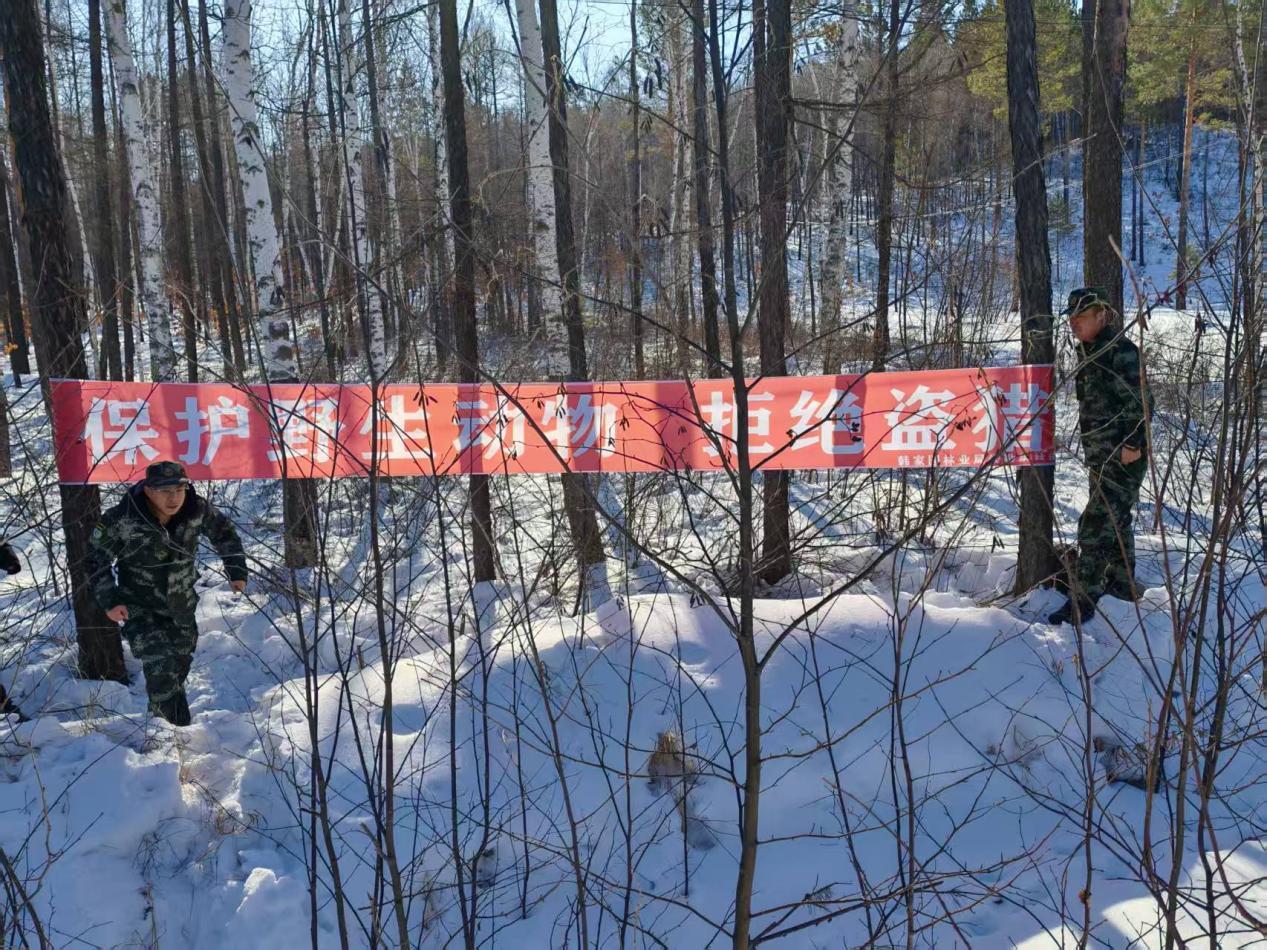 清網(wǎng)行動,鏟除安全隱患。林場積極響應(yīng)并深入開展“清風(fēng)行動2025”“百日攻堅(jiān)”等專項(xiàng)治理工作,在野生動物活動頻繁的重點(diǎn)區(qū)域,持續(xù)組織“巡山清套”等行動。今年以來累計(jì)組織開展各類專項(xiàng)行動16項(xiàng),工作人員克服嚴(yán)寒,對可能布設(shè)獵套、獵夾等非法工具的場所進(jìn)行拉網(wǎng)式排查和清理,堅(jiān)決從源頭遏制盜獵風(fēng)險,凈化了野生動物棲息環(huán)境。