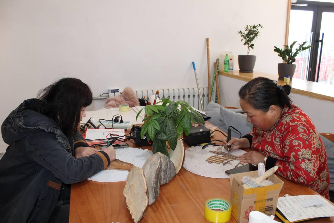 林場(chǎng)工作人員利用樺樹(shù)皮精心加工為各類(lèi)主題的樹(shù)皮畫(huà)(董淑玲 攝)