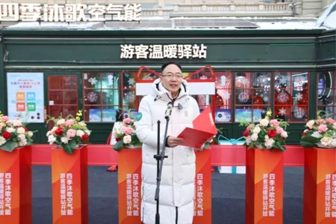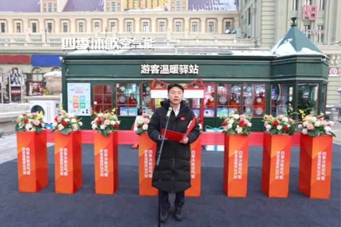 四季沐歌集團(tuán)總裁李駿在儀式講話中指出:“科技助力美好生活”絕非一句空洞口號(hào),而是集團(tuán)深耕綠色發(fā)展、踐行社會(huì)責(zé)任的核心內(nèi)核與行動(dòng)綱領(lǐng),依托前沿低碳技術(shù)打造的“溫暖驛站”應(yīng)用場(chǎng)景,以綠色賦能城市的生動(dòng)實(shí)踐贏得了廣大游客的深度認(rèn)可;面向未來(lái),驛站將完成從便民服務(wù)場(chǎng)景到低碳科普實(shí)踐基地的價(jià)值進(jìn)階,這既是企業(yè)低碳理念的具象化延伸,更是以場(chǎng)景為媒、以實(shí)踐為橋播撒綠色發(fā)展種子的責(zé)任踐行,四季沐歌始終堅(jiān)信冰雪經(jīng)濟(jì)的高質(zhì)量發(fā)展離不開綠色低碳的底色,集團(tuán)將持續(xù)以技術(shù)創(chuàng)新助力哈爾濱冰雪經(jīng)濟(jì)與綠色發(fā)展深度融合,讓人與自然和諧共生的理念在這座冰雪之城中落地生根,向五湖四海傳遞延伸。