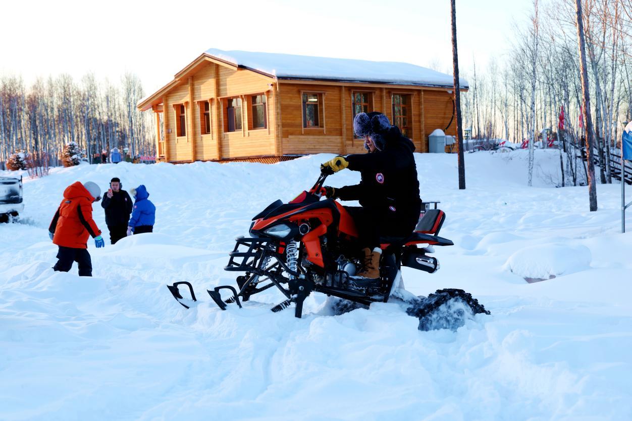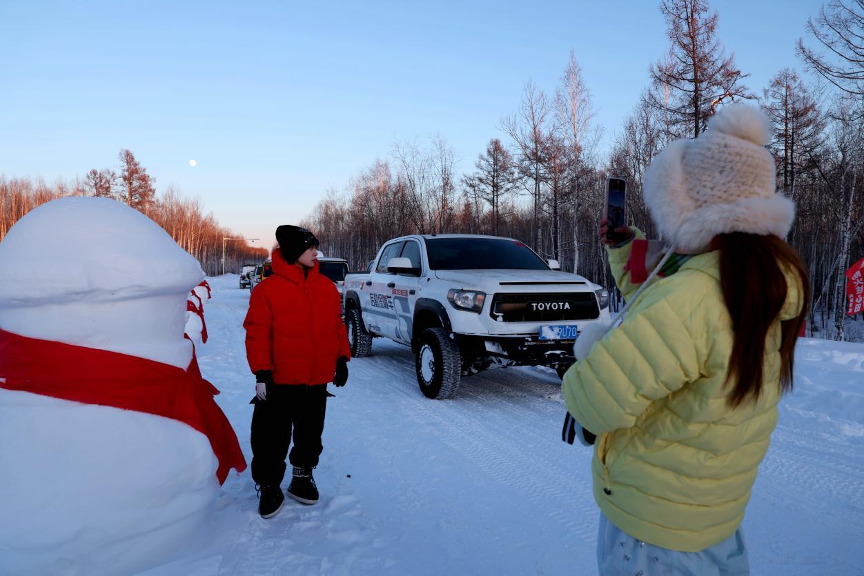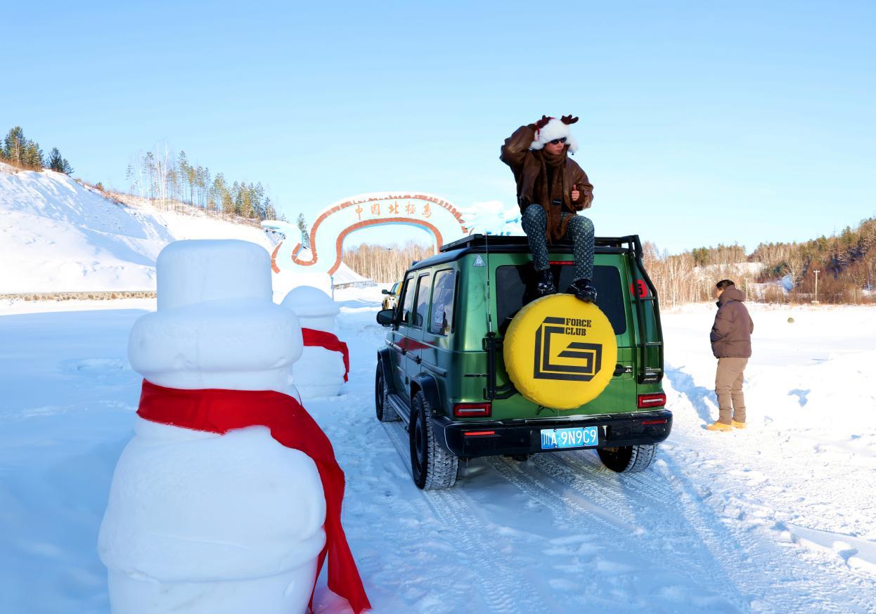 當(dāng)日中午,隨著車(chē)隊(duì)緩緩駛?cè)氡睒O島景區(qū)南門(mén),美麗的雪地廣場(chǎng)瞬間被熱情點(diǎn)燃。游客們紛紛走下車(chē),不顧零下數(shù)十度的嚴(yán)寒,或在松軟的雪地上玩起汽車(chē)漂移,或與雪人合影留念,或揚(yáng)起漫天雪花享受雪的輕撫,汽車(chē)馬達(dá)的轟鳴與歡聲笑語(yǔ)交織回蕩,讓這片銀裝素裹的天地化作歡樂(lè)的海洋。