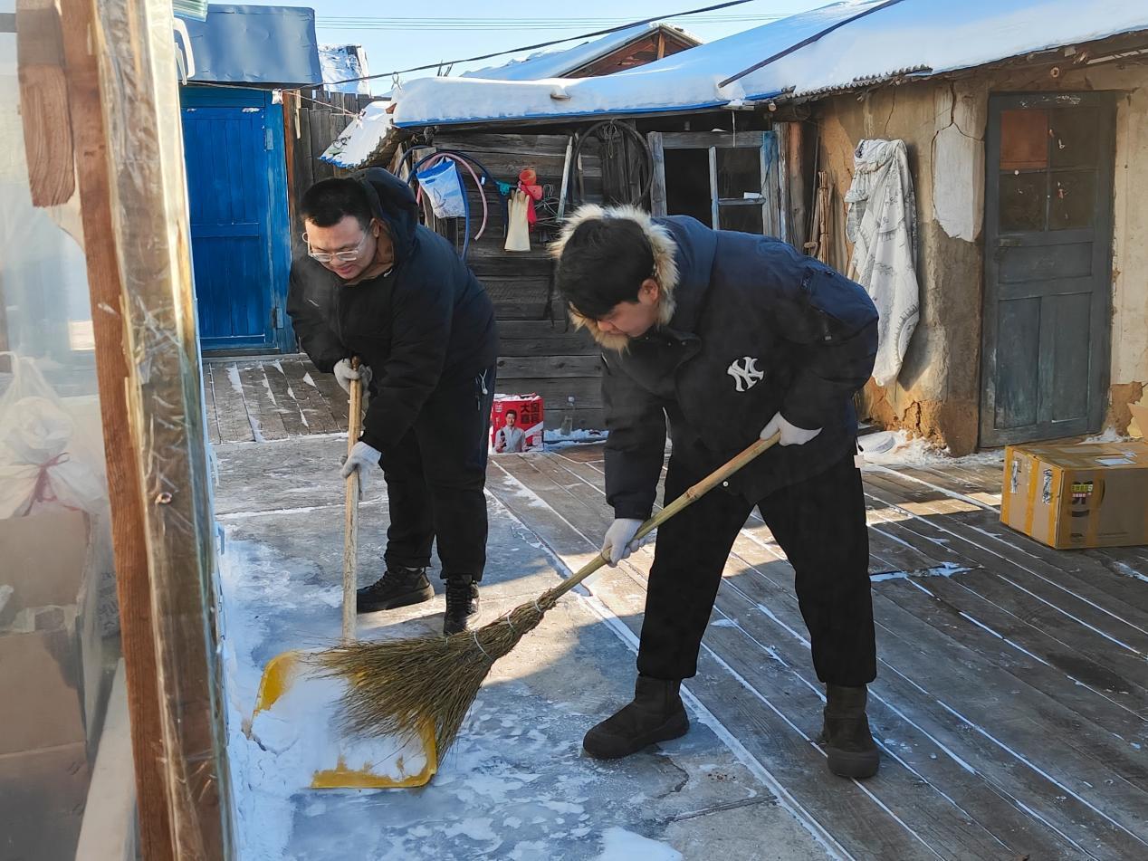林場黨員先鋒隊隊員幫助困難職工清理院落積雪(陶文玲 攝)