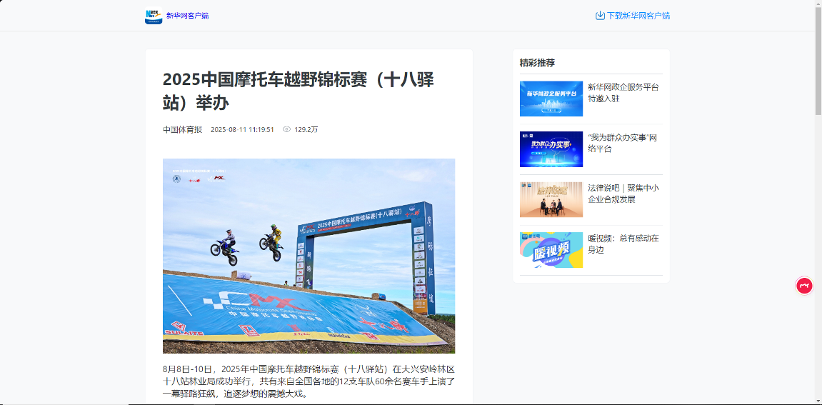 ——文旅融合激活品牌。舉辦2025中國摩托車越野錦標賽(十八驛站)新聞發(fā)布會,依托賽事開展“引擎轟鳴、巔峰之夜”文藝演出4場、“十八驛”風情版畫展覽體驗活動,邀請區(qū)內和林業(yè)局14名“網紅”開展網絡采風直播,吸引3萬人次參與互動,推動“文化+體育+旅游”深度融合,讓“大美興安、十八驛站”品牌影響力不斷提升。