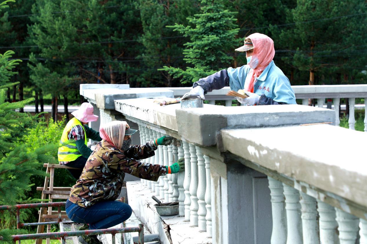 阿木爾林業(yè)局職工在修補北極冰藍莓酒莊護欄(王力 攝)